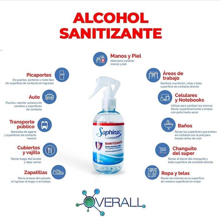 Reduce y evita la propagación de microorganismos y al mismo tiempo deja las manos suaves. Es de fácil uso y de secado rápido. Es una loción formulada a base de alcohol etílico al 70 % lo que hace que tenga un alto poder germicida. Esta recomendado por Asociaciones Internacionales para combatir el COVID-19. Ademas de usarse sobre manos y piel está también indicado para el uso en ropas y superficies.